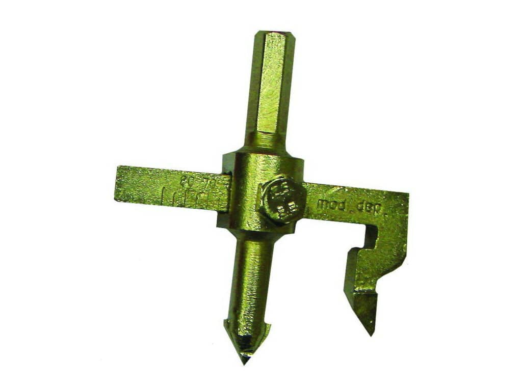 - «Балеринка». Это разновидность перьевых сверл. Состоит этот инструмент из центрального наконечника и раздвигающегося режущего органа. Подобная конструкция позволяет изменять диаметр отверстия. Она подходит для работы только с кафельной плиткой, так как разрушает только верхний слой. Чтобы получить отверстие, следует выбить отмеченный контур.