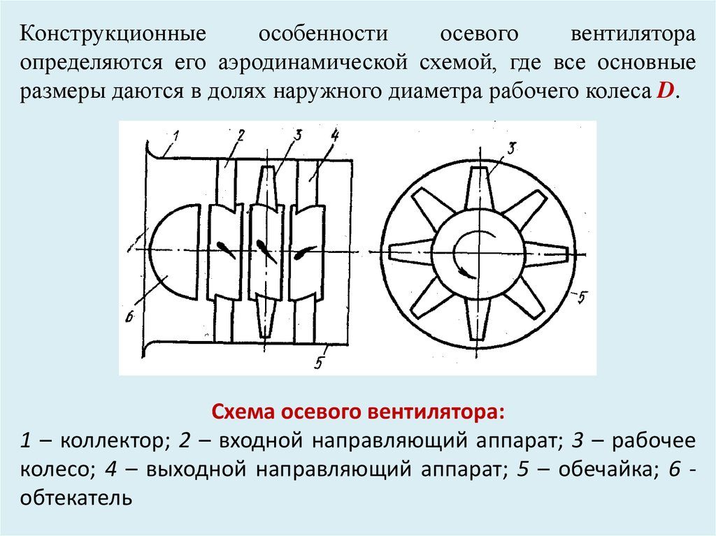 Государственным стандартом осевые вентиляторы обозначаются номерами по диаметру рабочего колеса. Умножив номер на 100, получим диаметр в миллиметрах.
