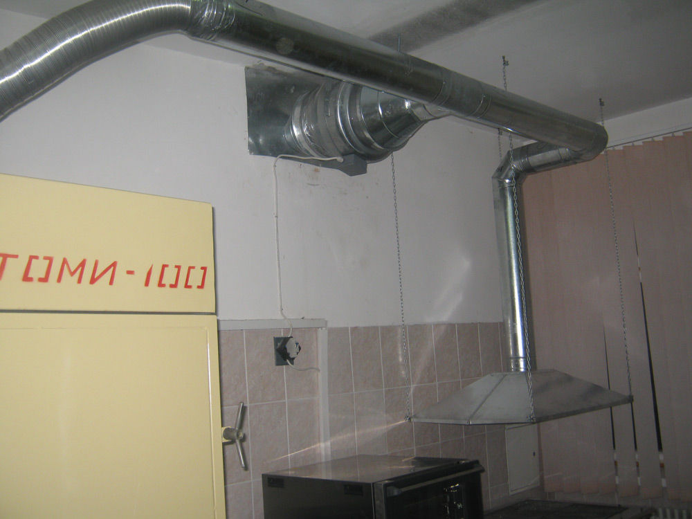 После установки фильтрующего устройства к выходному его отверстию примыкает канал воздуховода, который также фиксируется при помощи крюков. В качестве воздухоотвода может быть использована гофрированная или поливинилхлоридная труба с гладкой стенкой или жесткий металлический либо пластиковый короб.