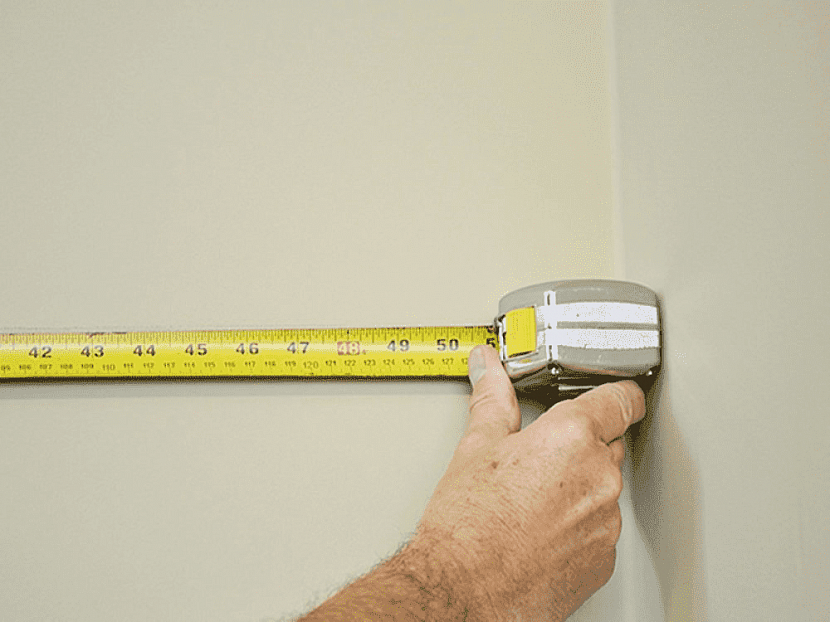 Проводить замеры лучше у основания стен, а для этого желательно отодвинуть или вынести всю мебель. Но, если такая процедура в ваши планы не входила, можно мерить и по центру. Главное при этом, чтобы воображаемая линия, по которой будет производиться измерение, располагалась под углом в 90° к стене.