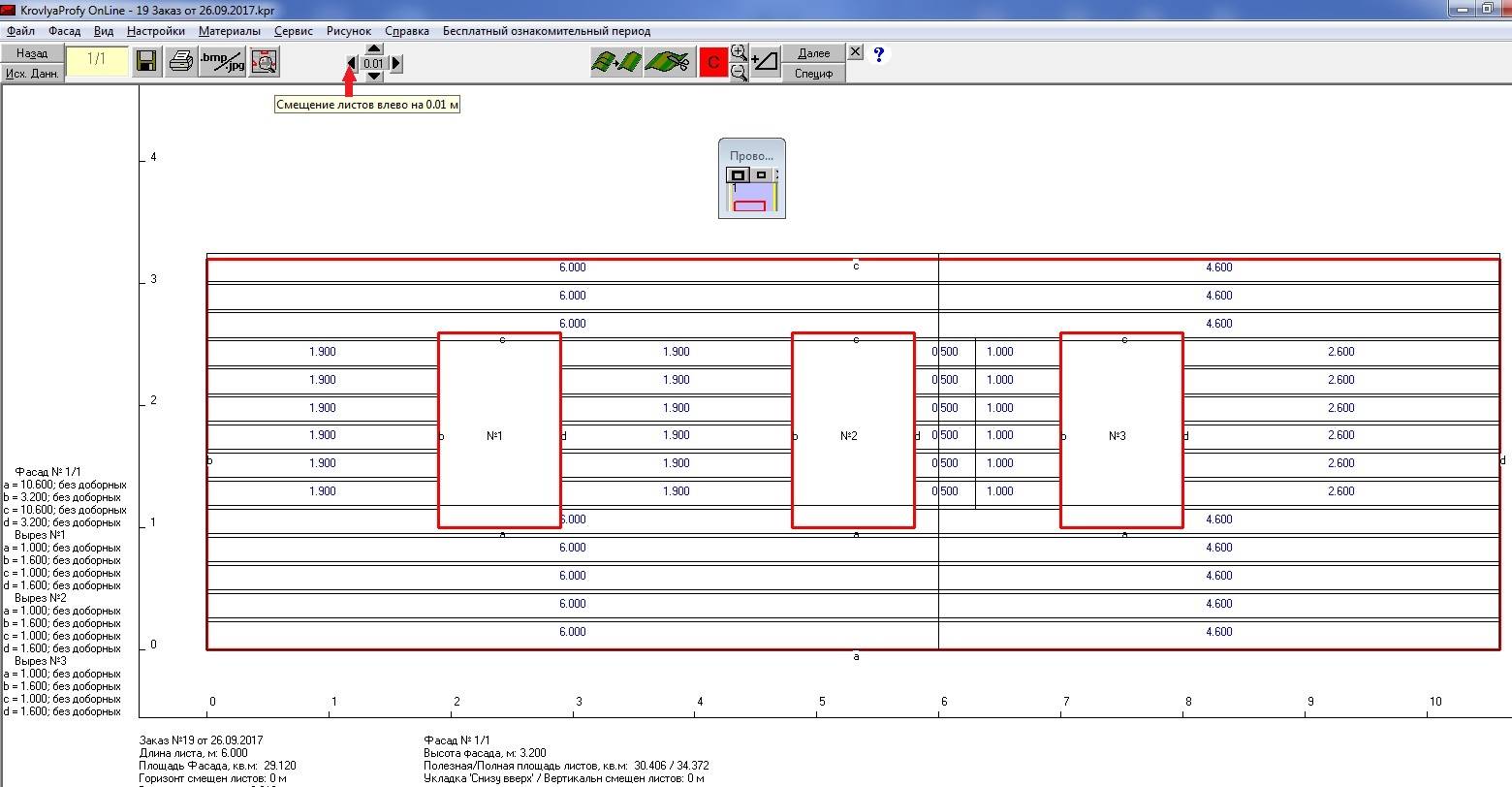 Чтобы получить список с размерами и количеством всех листов сайдинга, нажмите кнопку «Спецификация».