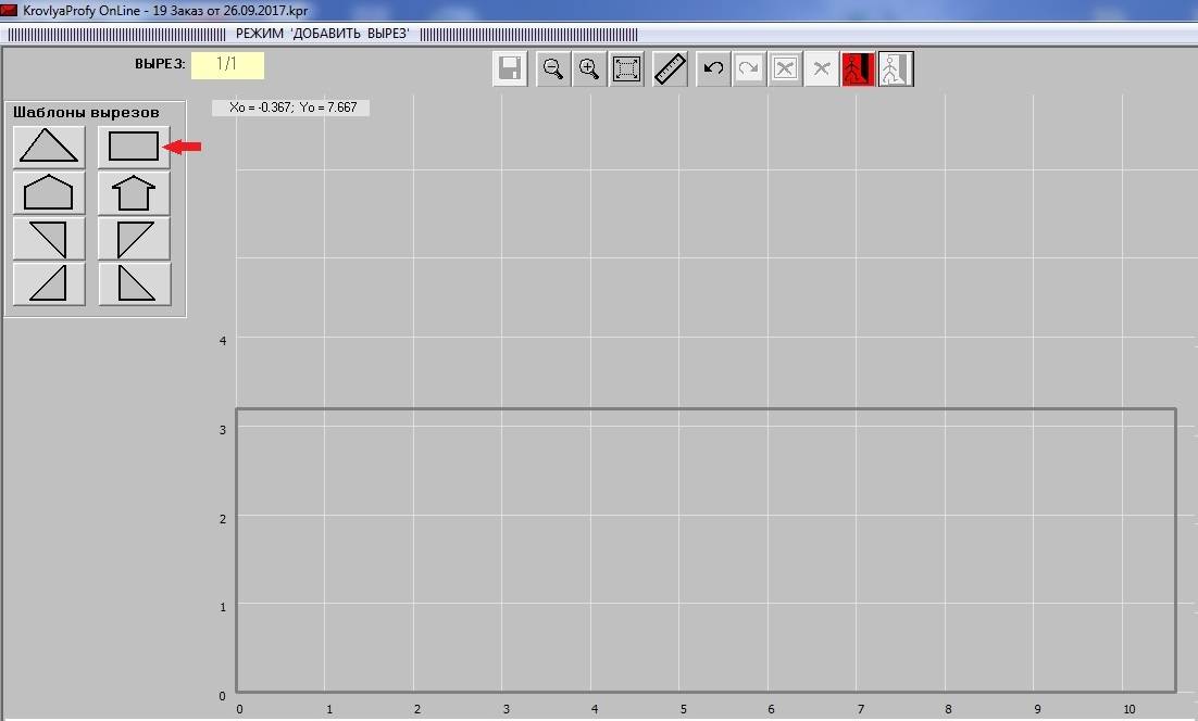 Наши окна прямоугольной формы, поэтому выбираем соответствующий шаблон выреза (рис.10).