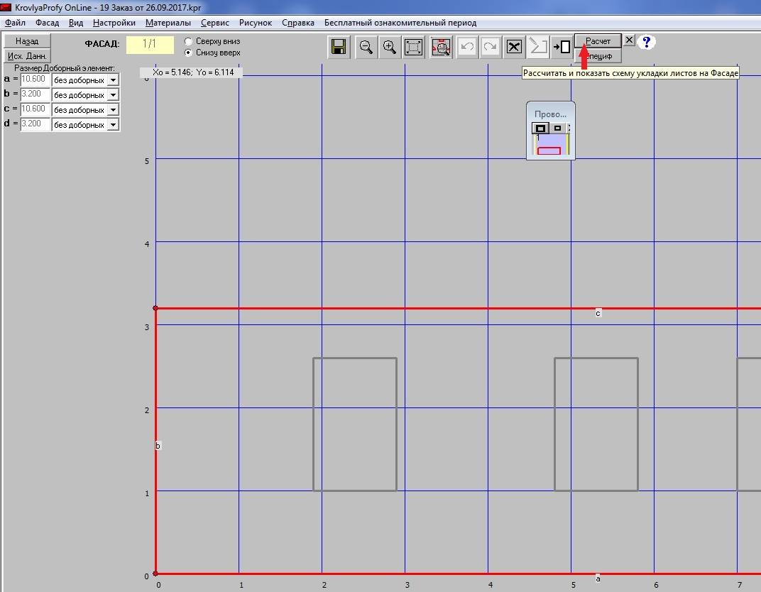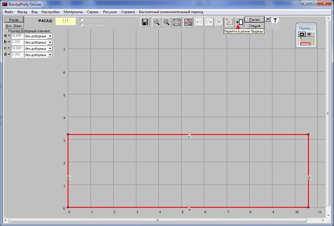 Поэтому выбираем его и указываем длину фасада а = 10,6 м и высоту b = 3,2 м (рис. 7). Жмем «ОК»