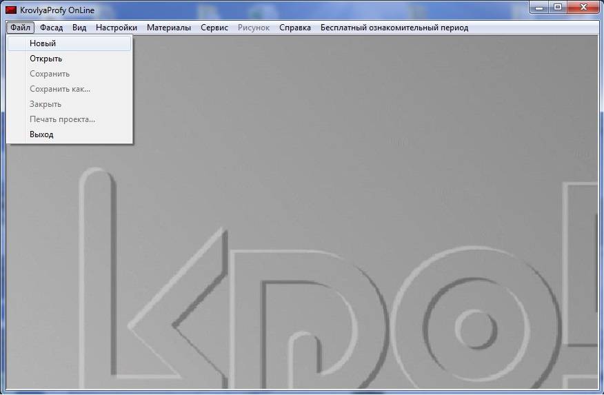 Рис. 2. Первое окно программы Krovlya Profy 8.2