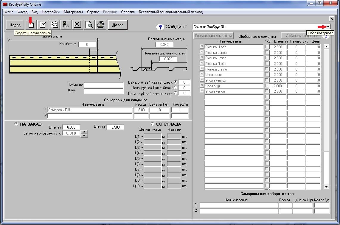 Эта программа позволяет рассчитать точное количество любого обшивочного материала: