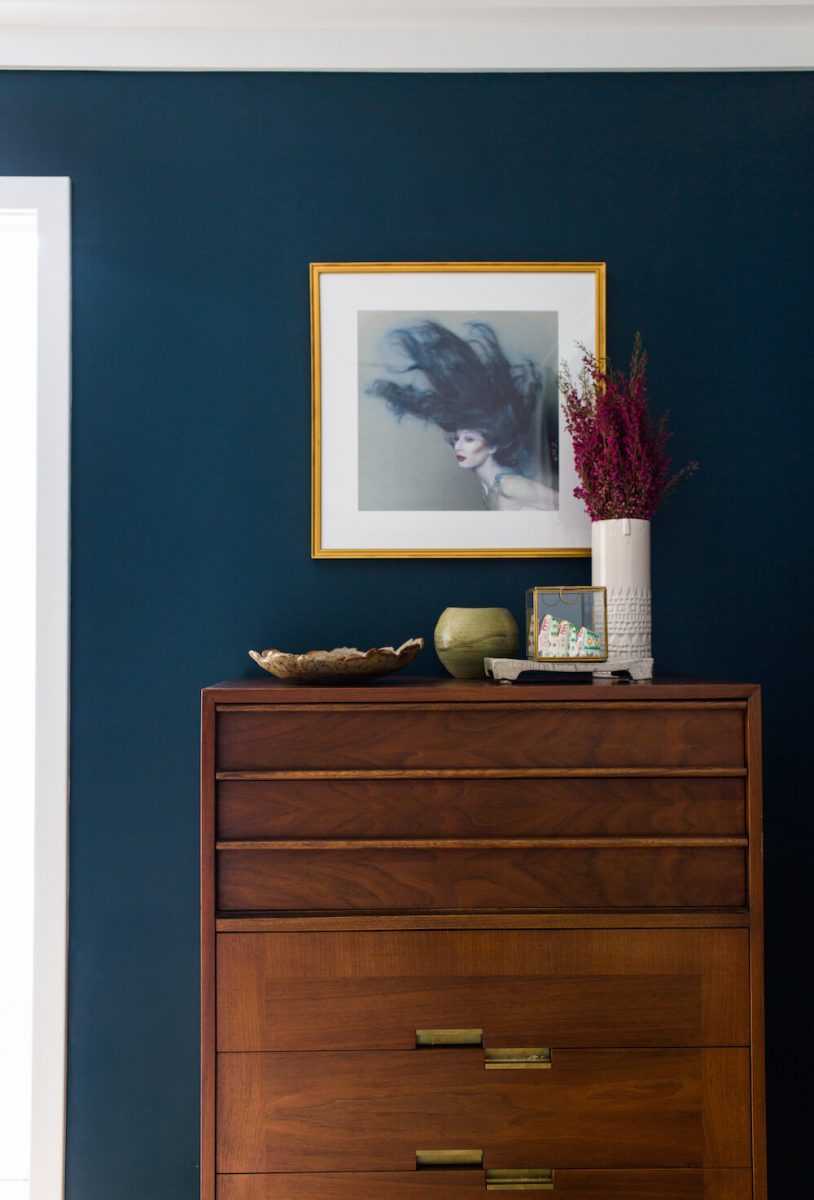 На стену за изголовьем можно повесить интересные панно, картины или постеры.