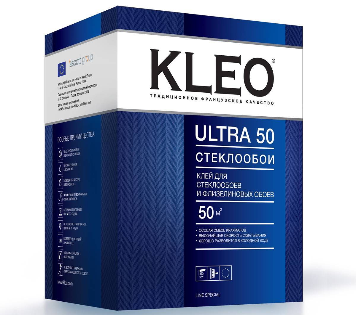 Экстра клей Kleo подходит для флизелиновых обоев, один из самых прочных составов.