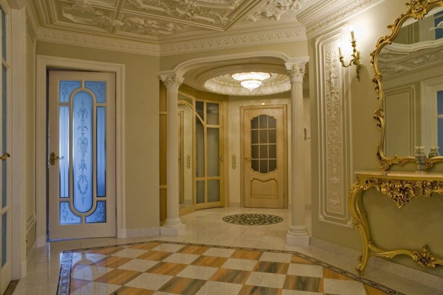 Помимо этого, настенная лепнина может представлять собой кронштейны, барельефы и колонны. Кронштейн, кстати, помимо основных функций, может использоваться как угловая деталь на стыке потолка и стены.