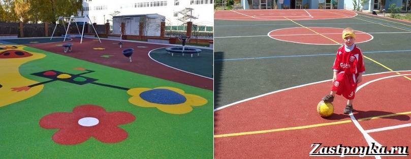 В обоих случаях, укладывая резиновое покрытие для детской площадки, старайтесь не выпачкать клеем лицевую поверхность. Он не оттирается. След все равно остается. Да, это не так заметно после пары недель, но все равно портит настроение.