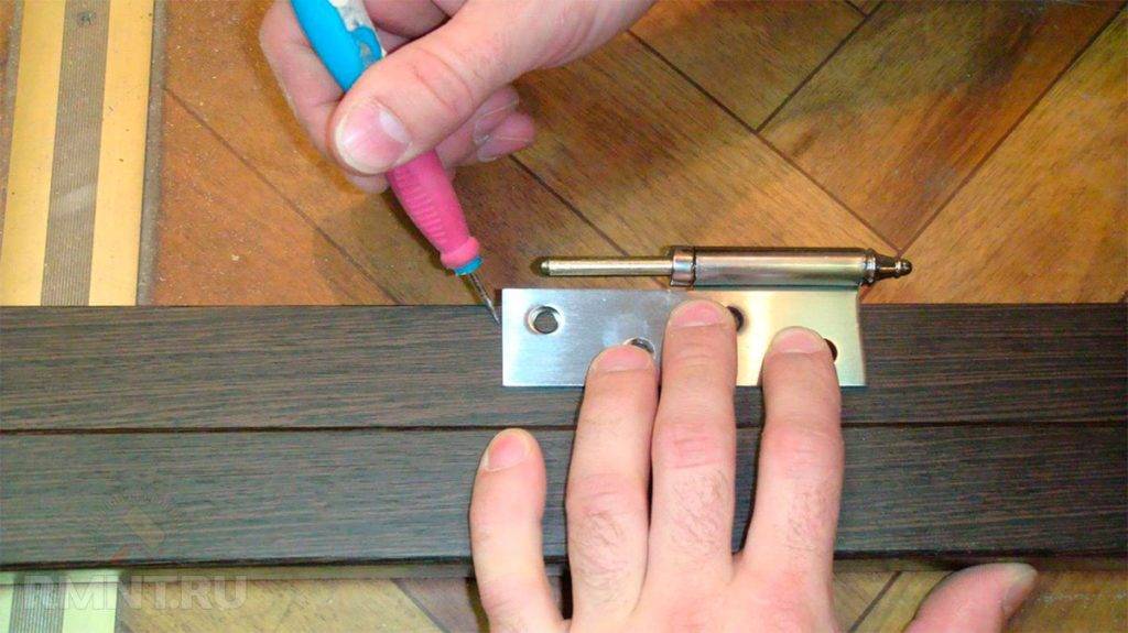 Когда петли четко легли в углубление, можно приступать к их прикручиванию саморезами.