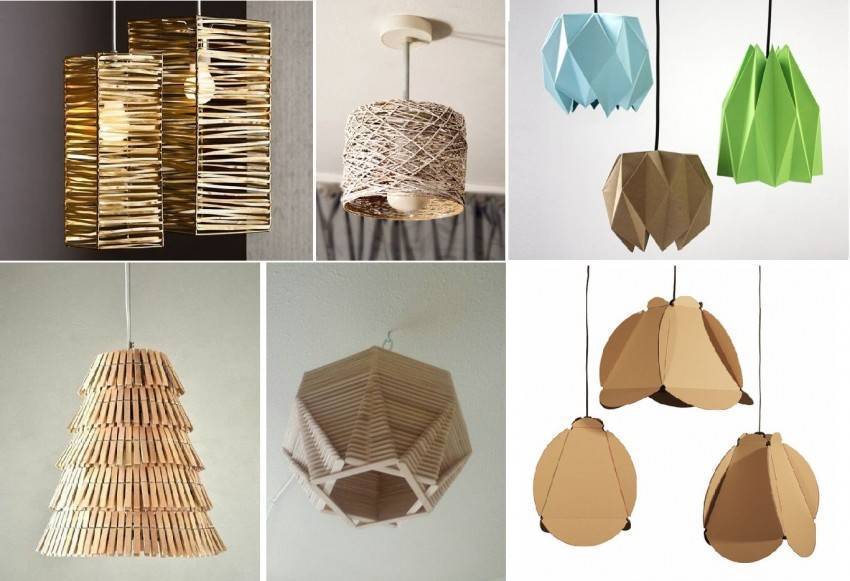Самодельные декоративные изделия можно изготовить практически из любого материала. Дизайнеры предлагают такие необычные способы сделать плафон своими руками: