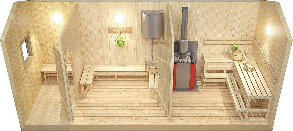 - Комната отдыха или предбанник с душевой кабиной или без нее.