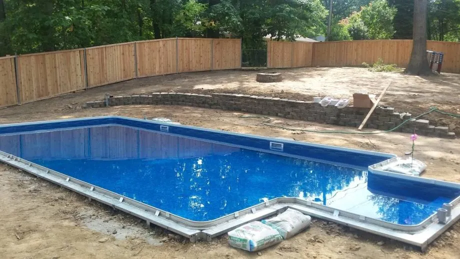 Для строительства бассейна потребуются полипропилен, геотекстиль или пенопласт, щебень, металлические прутья, кирпич и бетонная смесь.
