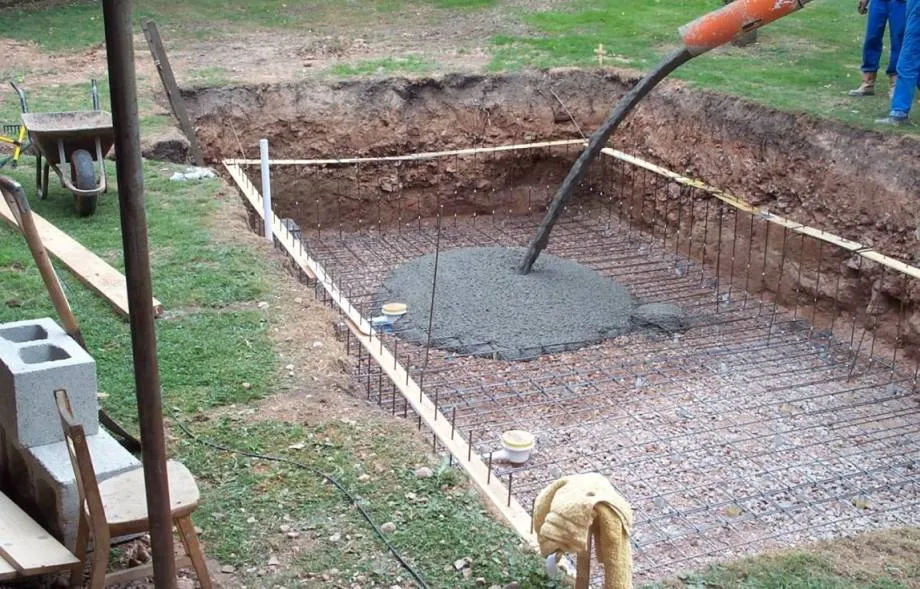 Начинайте заливать раствор в промежутки между стенами чаши и котлована. Сначала залейте первый слой в 20-30 см и дайте ему застыть – оставьте раствор не меньше, чем на сутки. На следующий день залейте новый слой в 30 см и снова оставьте бетон засыхать. Повторяйте процедуру до тех пор, пока все пространство между чашей и котлованом не будет окончательно забетонировано.