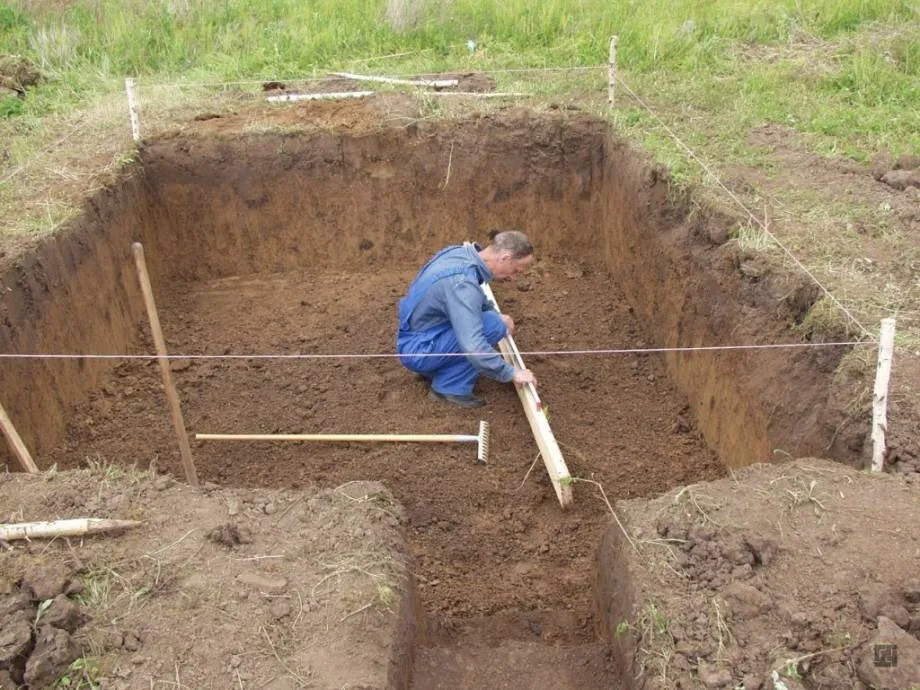 Наиболее трудоёмкая работа в постройке бассейна — подготовка котлована. Его можно выкопать самостоятельно, при помощи лопаты, но для экономии времени лучше пригласить специалиста с экскаватором.