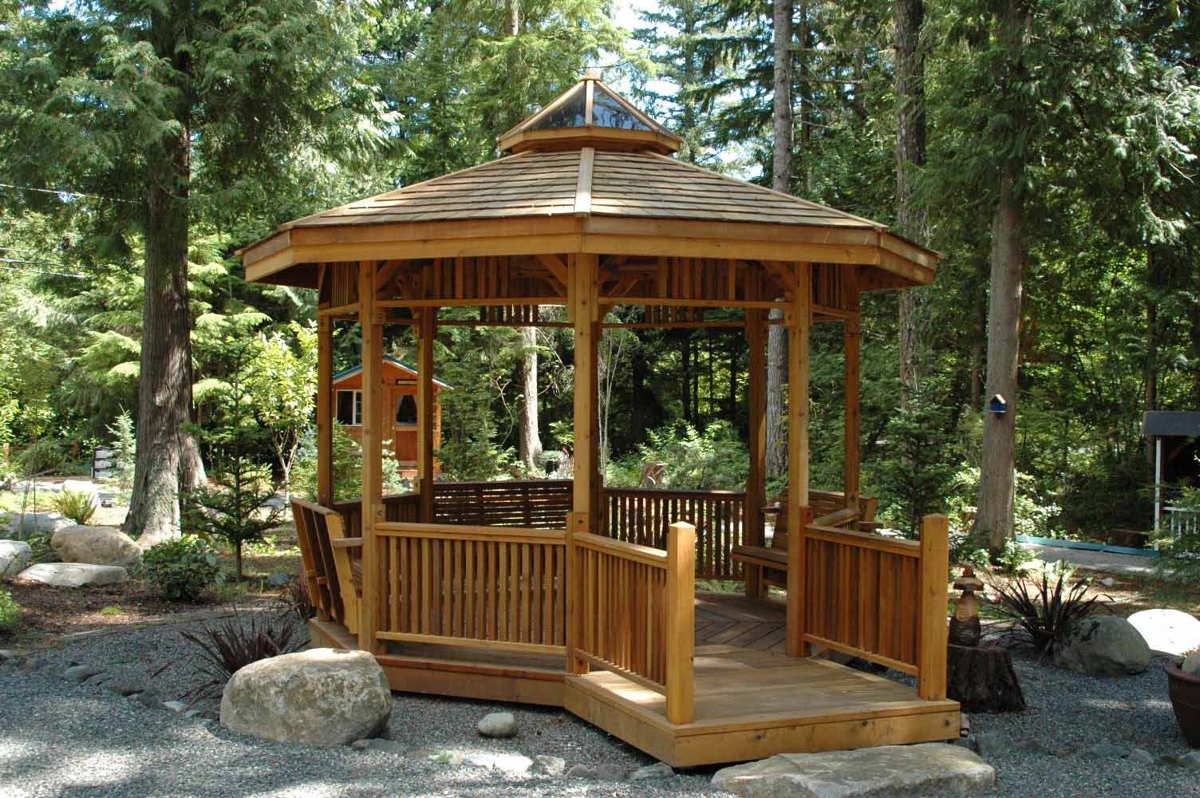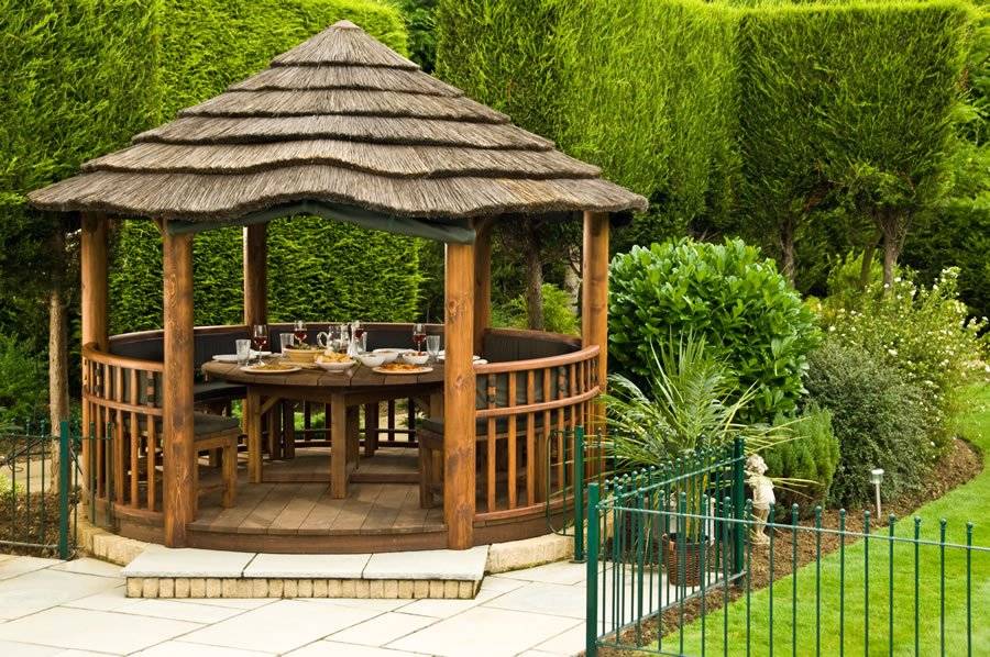 В представленной ниже фотогалерее вы можете увидеть самые разнообразные варианты беседок, некоторых идеи можно позаимствовать и применить на своем загородном участке.
