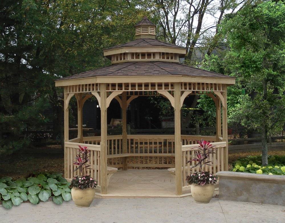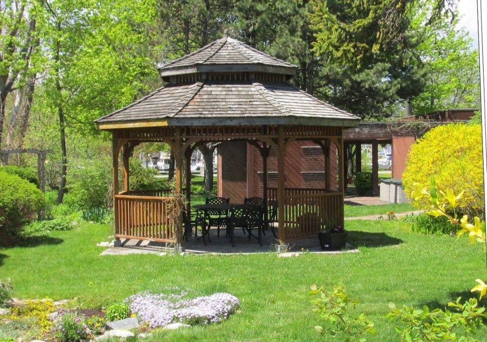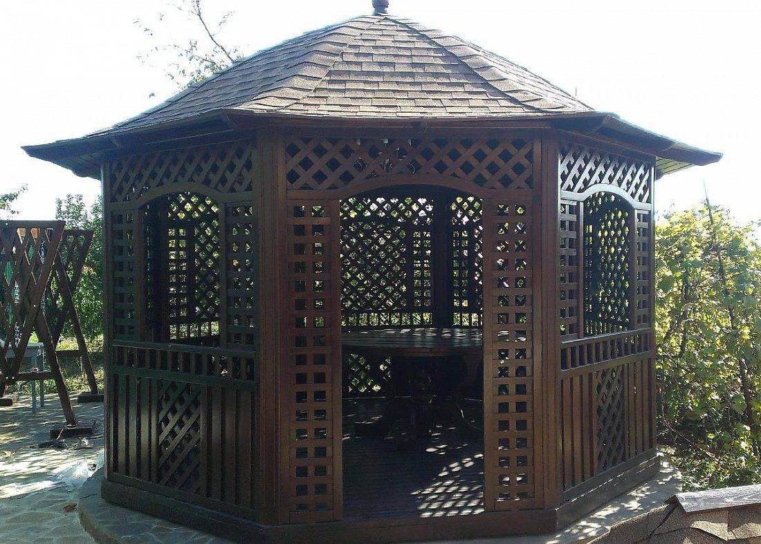 Выставленная по уровню беседка точно уже никуда не денется. Она в этом плане более устойчива, нежели деревянная.