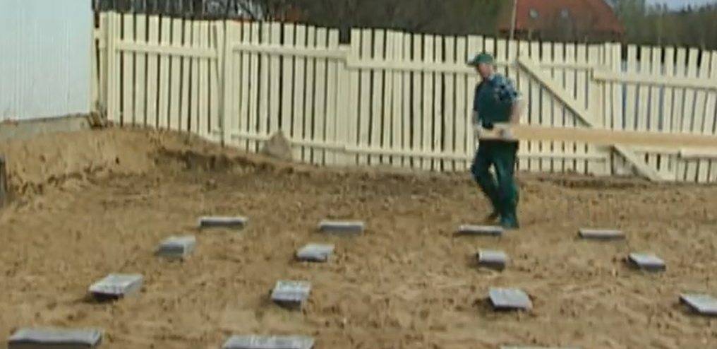 Для такого фундамента важно выполнить крепление опалубки из деревянных досок, при этом зафиксировать внутри ее каркас из арматуры и заполнить бетоном. Чтобы продлить срок эксплуатации конструкции для основания этого вида, необходимо сделать подушку из щебня с песком, которая уплотнит положение опор и предотвратит их выталкивание из земли при сильном морозе, усадке беседки.