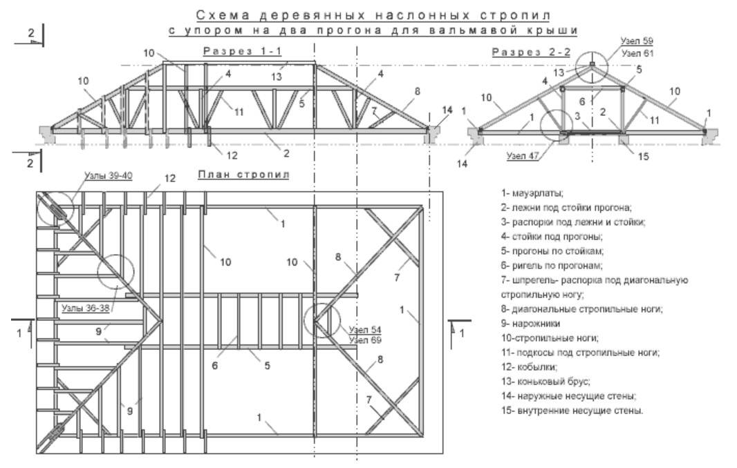 При строительстве простой вальмовой крыши можно воспользоваться типовым проектом, который разрабатывали специалисты. Проектная документация включает в себя: