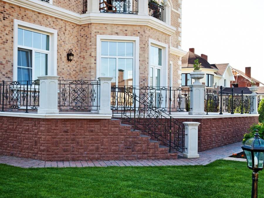 Наличие угловых элементов из искусственного камня существенно облегает процесс укладки на цоколь или любую другую поверхность
