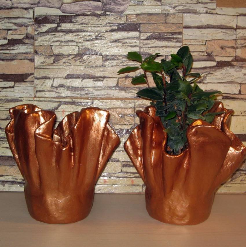 После того, как все высохнет, можно смело ставить во внутрь горшок или вазу с цветами и растениями.