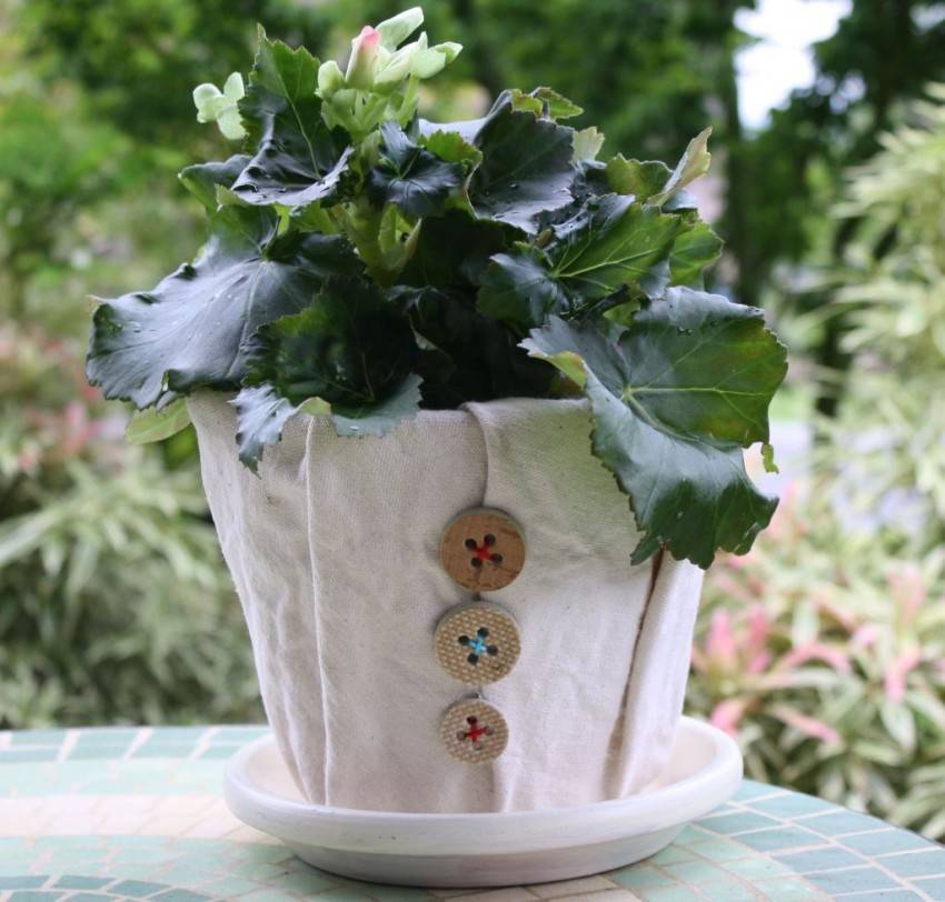 Декор цветочных горшков шпагатом, тканью, пряжей