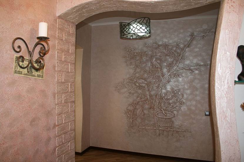 Комбинация фрески и декоративной штукатуркиИсточник kakoiremont.ru
