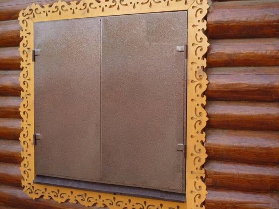Филенчатые створки предназначены для защиты помещений от солнечного излучения. Они изготавливаются из бруса, который является рамой, и закрепляемых в пазах реек. Угол наклона планок подбирается опытным путем. Они должны блокировать прямые лучи солнца, сохраняя достаточную освещенность внутри дома. Дверки делаются из металла, если им отведена защитная функция.