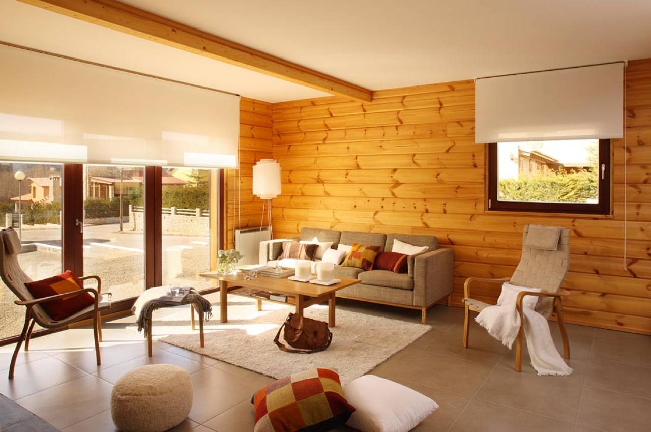 Внутренний дизайн дома из бруса: светлые тона, обилие света