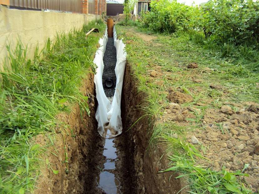Во всех случаях используется дренажная канава, куда укладываются дренажные и ливневые трубы. По-другому такие канавы еще называют дрены.