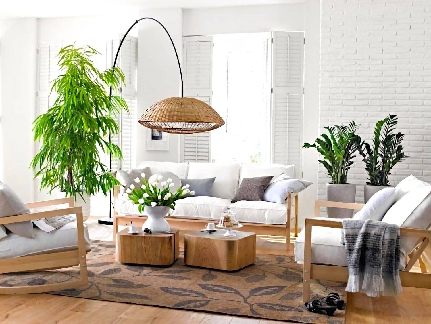 Большая яркая комната в эко стиле