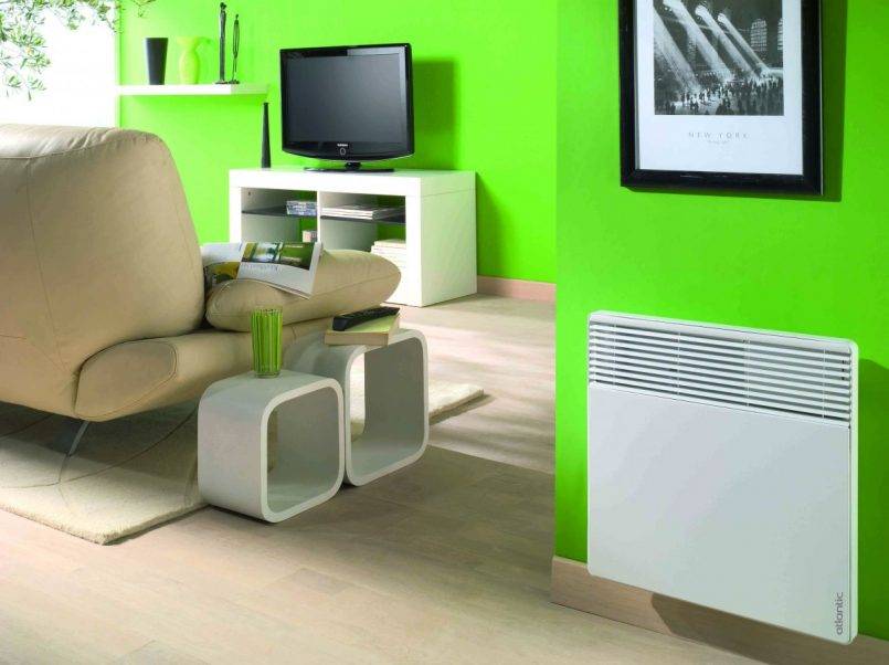 Электрический конвектор по внешнему виду напоминает обычную батарею отопления. Внутри корпуса прибора установлен закрытый ТЭН. Принцип работы конвектора достаточно прост: через нижнюю решетку внутрь поступает холодный воздух, который нагревается ТЭНом и через верхнюю решетку в помещение поступает восходящий поток теплого воздуха. С помощью установленного на приборе термостата происходит отслеживание температуры воздуха и, после достижения установленных пользователем параметров, отключается. Такой принцип работы обеспечивает высокую экономичность конвекторной системы отопления. В качестве альтернативы можно использовать керамические конвекторы.