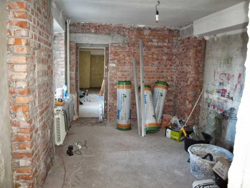 Лишние перегородки сносят или устанавливают добавочные перегородки, также устанавливают дверей и окон;