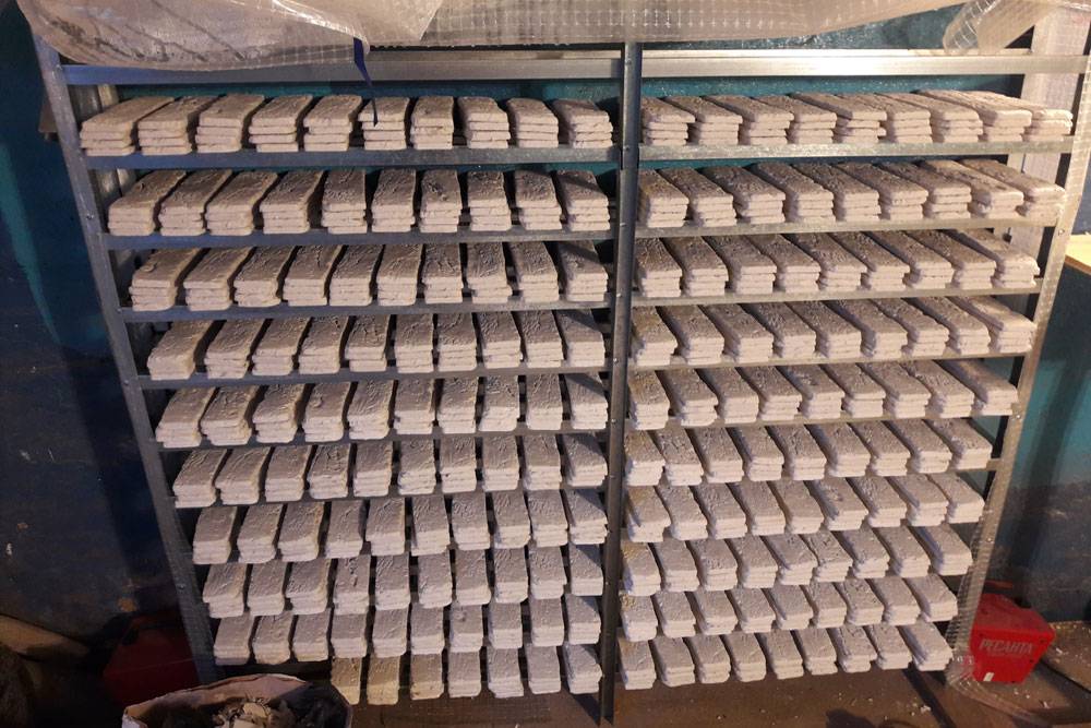 Сухой состав разводится водой в подходящей емкости, элементы погружаются в раствор на два часа. Главное – располагать фрагменты так, чтобы они не соприкасались между собой, иначе появятся выделяющиеся участки.