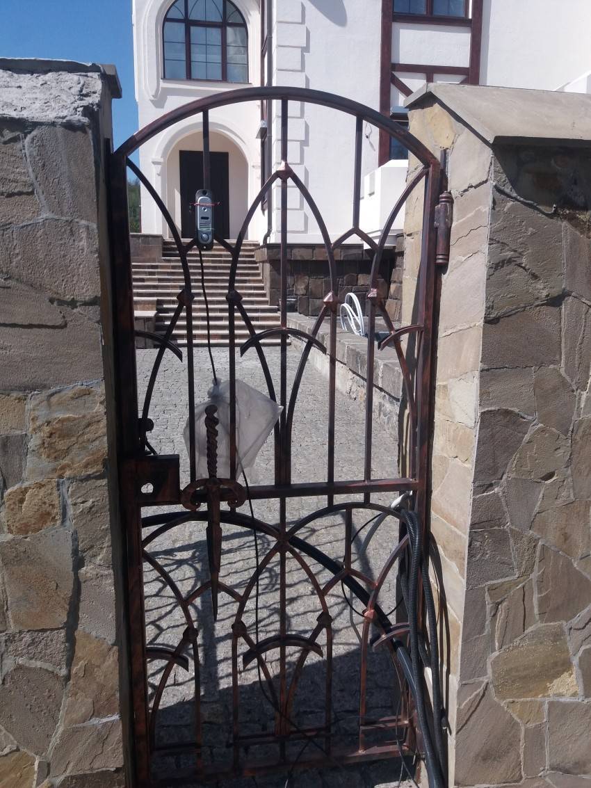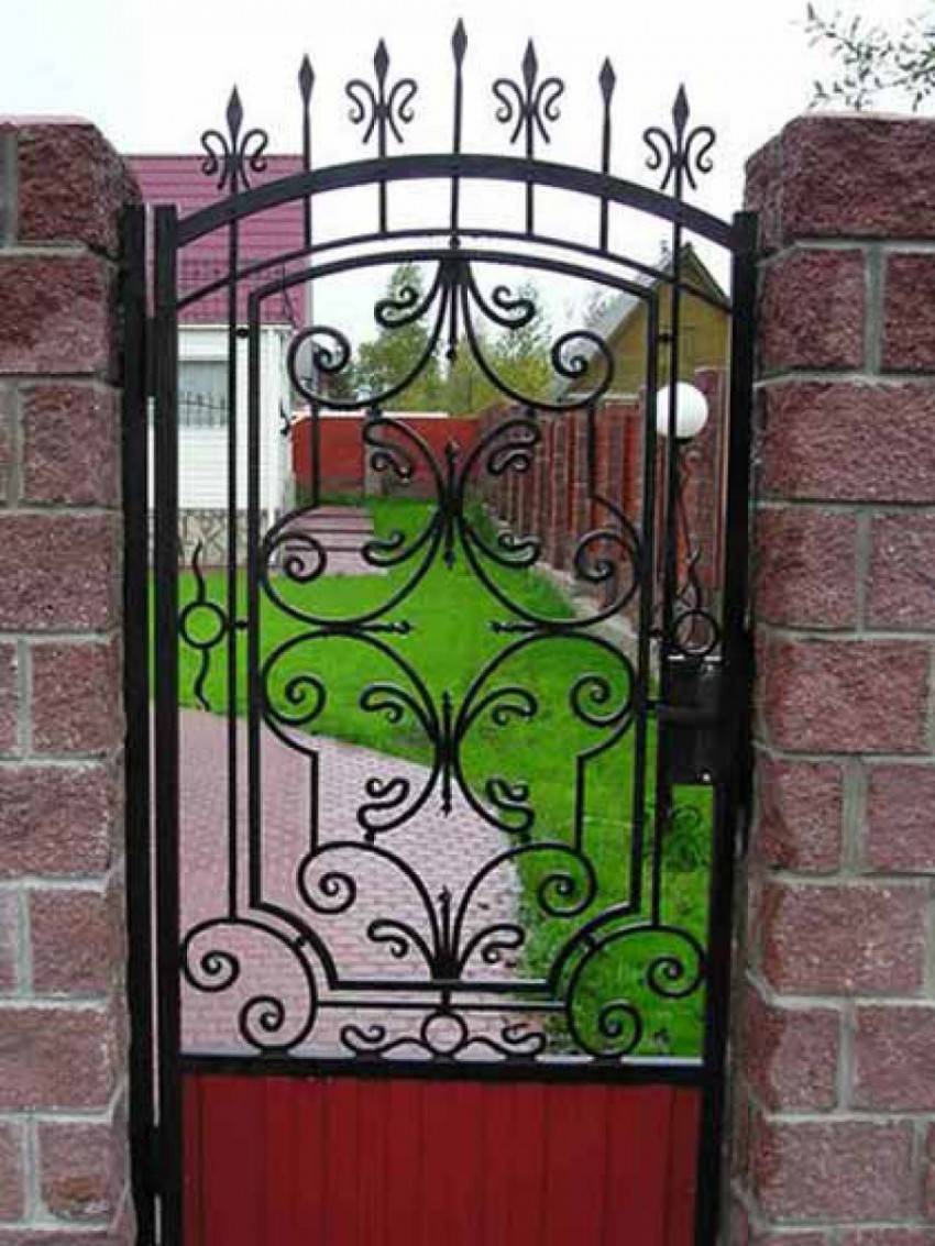 Ажурную металлическую калитку сделать самостоятельно гораздо сложнее. Готовое изделие стоит недешево. Но ведь и устанавливать ее на фоне старенького домика нет никакого смысла. Кованый ажурный забор и входная калиточка имеют множество достоинств: