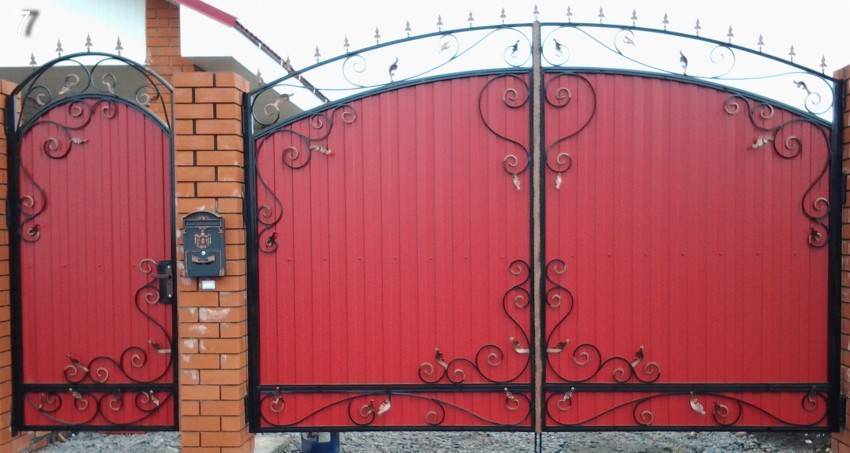 Что касается окраски или оцинковки, то желательно, чтобы профнастил на воротах был таким же, как и на заборе. Излишняя пестрость не прибавит эстетичности.