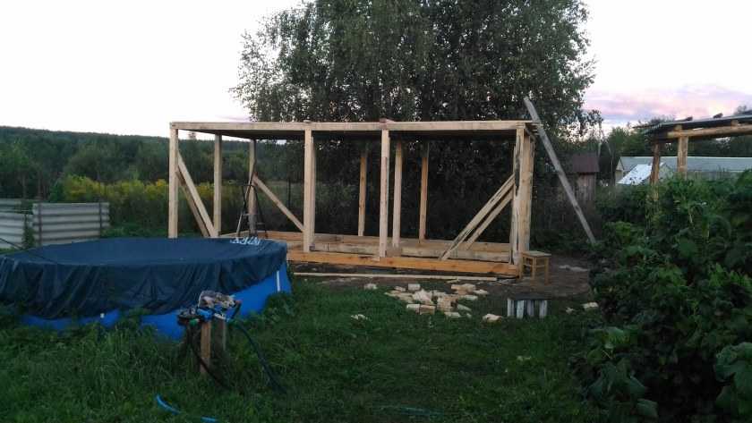 Процесс сборки небольшой каркасно-щитовой бани с фундаментом на сваях