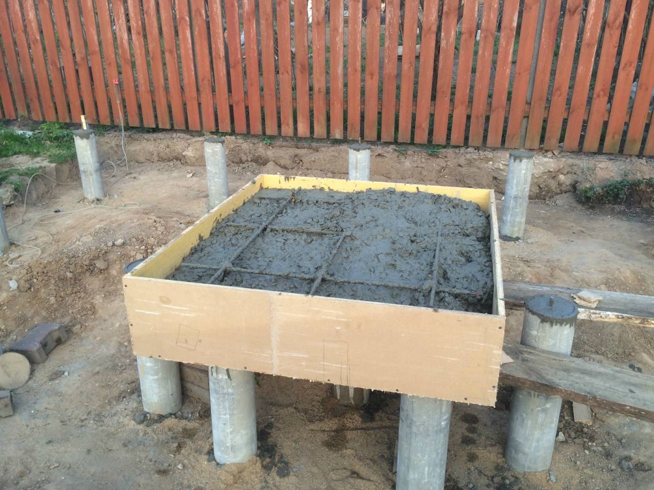 - Шаг 5. Теперь можно заливать бетон – либо за один подход, либо послойно, но не давая предыдущему слою успеть высохнуть.