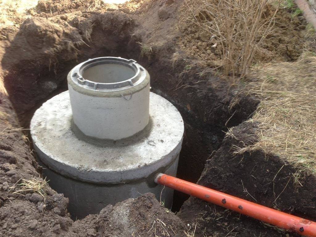 - Железобетонные кессоны. Они представляют собой систему бетонных колец, которые укладываются друг на друга. Поверх этой конструкции ставится специальный люк или крышка. Сооружение данной установки невыгодна в финансовом плане, так как дополнительная гидроизоляция — вещь не из дешёвых. Год за годом всё реже стали использоваться железобетонные кессоны, опять же из-за его высокой стоимости. Также благодаря его пористой структуре он имеет довольно плохую гидроизоляцию, поэтому необходимы ещё и дополнительные меры по укреплению кессона. Кроме плохой гидроизоляции такой резервуар имеет плохую теплоизоляцию. Из этого следует, что вода в кессоне может замёрзнуть даже при незначительно низких температурах. Из-за его большого веса с годами кессон немного приседает в грунт, а это значит, что внутренние трубопроводы будут изменять свою форму.