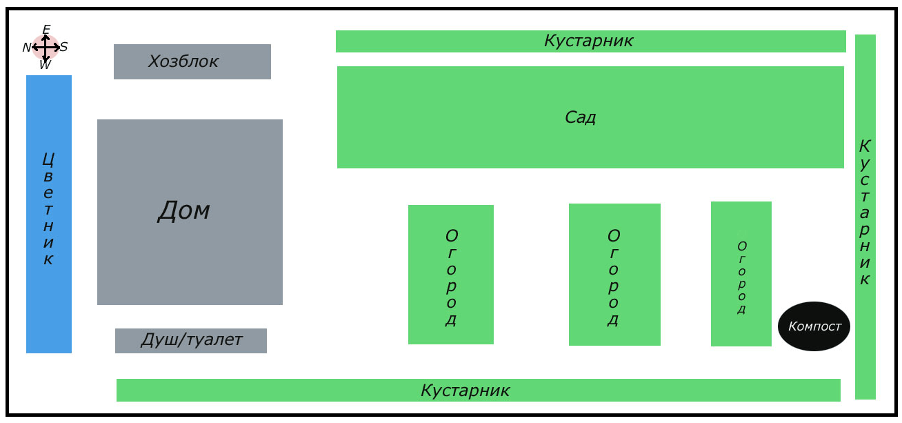 Прежде чем приступить к закупке необходимого инвентаря, саженцев и отделочных материалов, важно составить четкий и подробный план расположения всех элементов ландшафтного дизайна – от крупных построек до самого маленького кустика. В первую очередь нужно на бумаге нарисовать схему границ участка и отметить на нем все имеющиеся строения, деревья, плодоносные кустарники, клумбы и натоптанные дорожки
