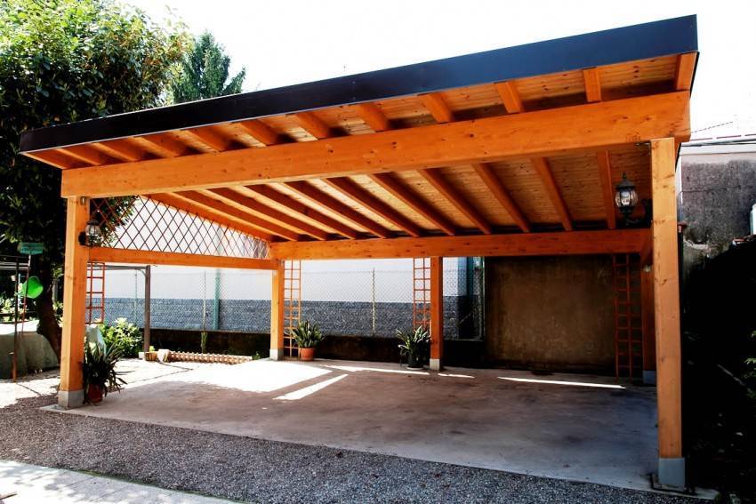 Самым оптимальным и недорогим вариантом является навес из дерева, который не требует дополнительных средств, таких как сварочные или отделочные работы. План разработки обязательно должен содержать чертежи навеса.