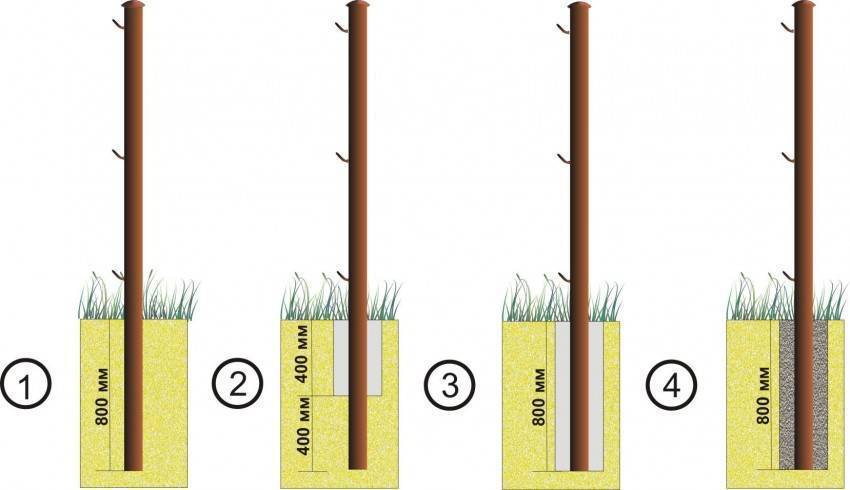 Более дешевый и быстрый вариант — просто вкопать столбы в землю. Столбы нужно вкапывать на глубину не менее 0,6 м.