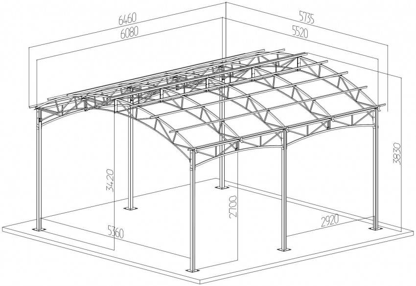 Примерный чертеж навеса из поликарбоната