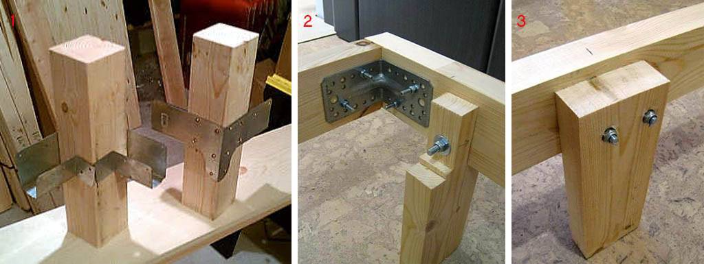 Второй вариант предполагает соединение элементов с применением проушин и деревянных шипов. Гнезда выполняются с помощью лобзика или долота. Они должны иметь глубину 5 см и ширину 2-3 см. Подготовленные соединения смазываются клеем и собираются.