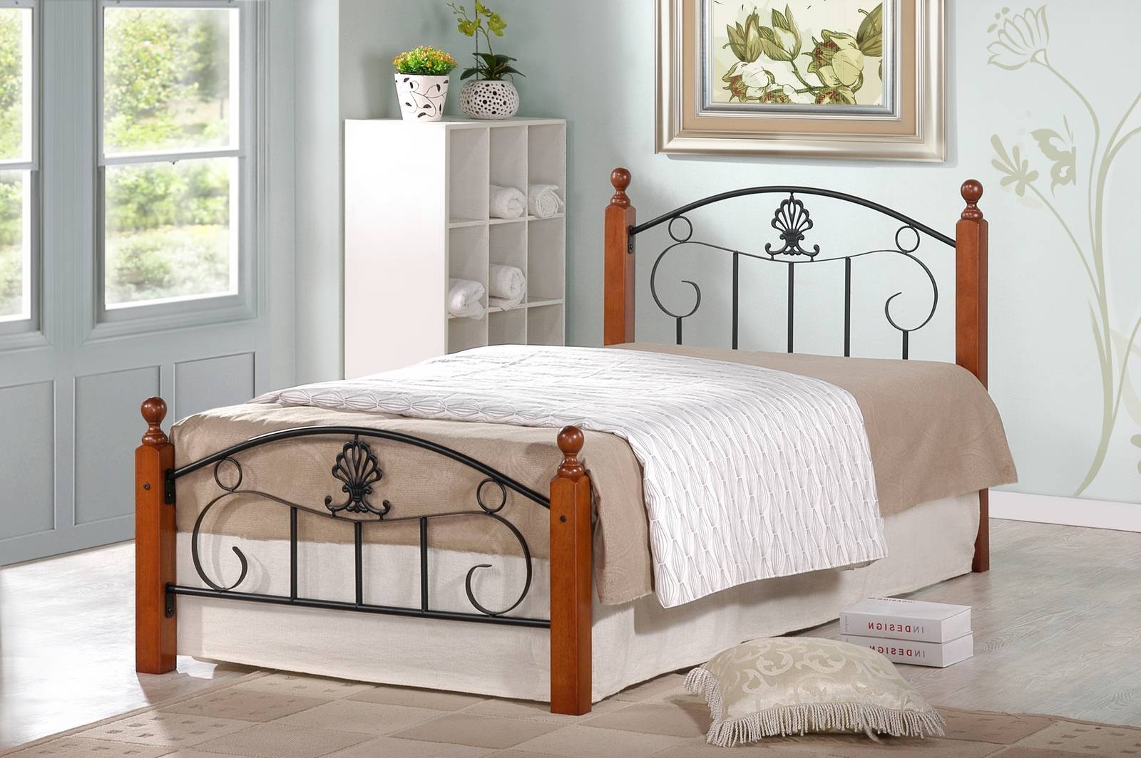 Прочно обосновались в современных интерьерах кровати из металла. Материал отличается высокой прочностью, износостойкостью и долговечностью. Металлические конструкции выполняются под позолоту или серебро, имитируют вид состарившегося изделия, могут обтягиваться кожей или тканью. Такие конструкции идеально вписываются в помещения, оформленные в стиле кантри, модерн или хай-тек.