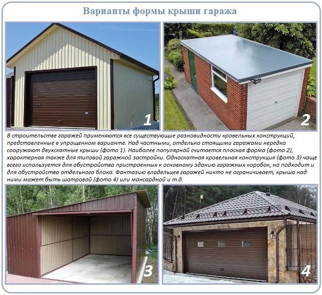 Выбор зависит от типа конструкции кровли, финансовых возможностей хозяина гаража.