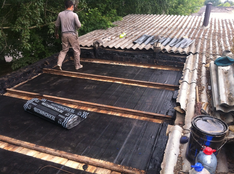Когда проводится демонтаж старого рубероида, то его выполняют до бетонного основания. Все заметные щели заделываются цементным раствором и ждут, пока он застынет.