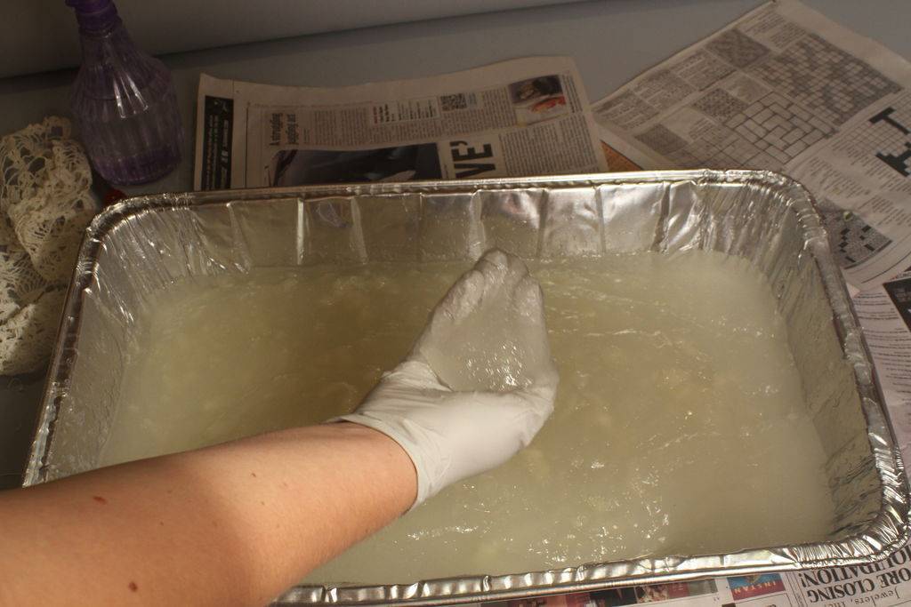 обработанной поверхностью под струю горячей воды, пока ее часть с дном просто