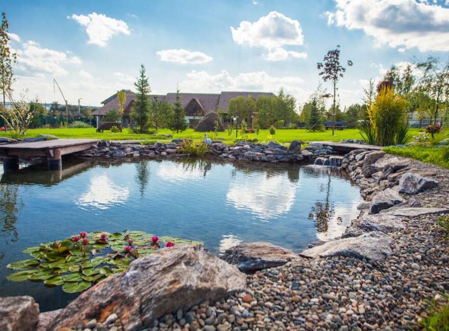 Искусственные пруды создаются не для купания, а для любования природой. Там можно высадить специальные водные растения и разводить рыбок.
