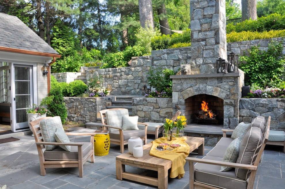 Красивый дворик с камином, печью и зоной барбекю